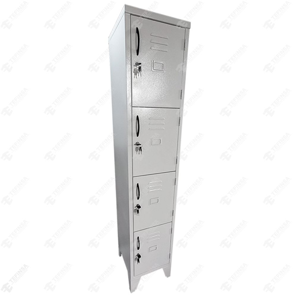 Locker metálico de 04 casilleros con una columna y cuatro filas de almacenamiento; perfecto para aquellos que necesitan una cantidad aún mayor de espacio de almacenamiento seguro. Hecho de acero resistente y duradero, que brinda seguridad para guardar tus pertenencias personales o artículos de valor. Ideal para su uso en una variedad de entornos, desde oficinas, escuelas, gimnasios, vestuarios, etc…. Todos nuestros lockers metálicos cuentan con garantía; además contamos con colores y acabados personalizados según sus necesidades.