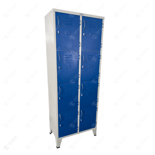 Locker metálico de 08 casilleros con dos columnas y cuatro filas de almacenamiento; perfecto para aquellos que necesitan una cantidad aún mayor de espacio de almacenamiento seguro. Hecho de acero resistente y duradero, que brinda seguridad para guardar tus pertenencias personales o artículos de valor. Ideal para su uso en una variedad de entornos, desde oficinas, escuelas, gimnasios, vestuarios, etc…. Todos nuestros lockers metálicos cuentan con garantía; además contamos con colores y acabados personalizados según sus necesidades.